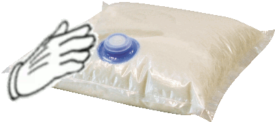 An animated sticker depicting a hand comically slapping a bag of milk, creating a fun and playful visual effect.