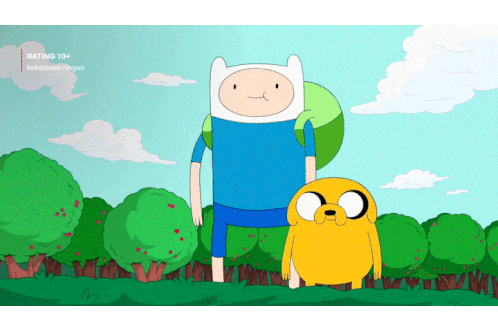 Finn and Jake from Adventure Time, along with other characters, react with 'Bagus Bagus Bagus Good' in a fun animated sticker.