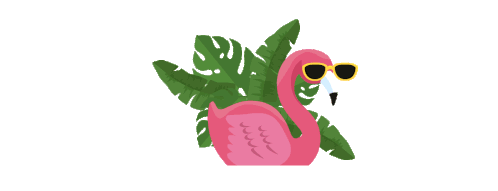 A vibrant sticker featuring the word 'Bahamas' with a cool pink flamingo wearing sunglasses, surrounded by tropical leaves.
