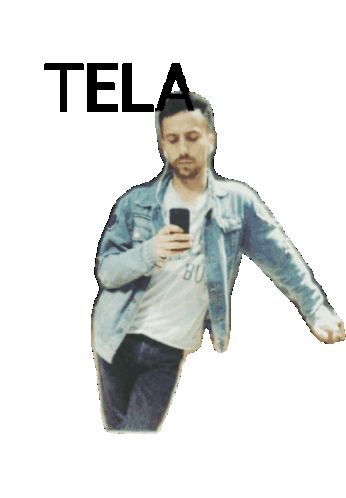 Man in denim jacket posing with phone, word TELA visible. Represents the 'Bailo Ridiculo' character or meme.
