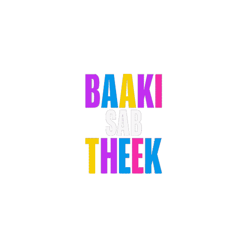 Animated text sticker displaying 'BAAKI SAB THEEK' in colorful, changing letters, conveying 'Everything is fine'.