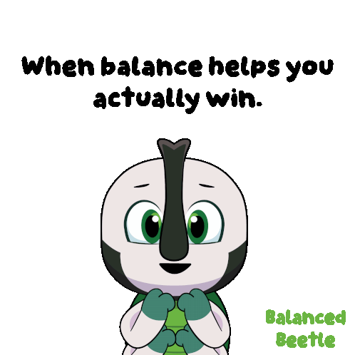 a cartoon of a balanced beetle with the words " when balance helps you actually win "