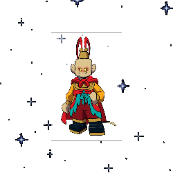 Bald Sun Wukong from Lego Monkie Kid (LMK), a pixel art monkey with a crown, rotates in space.