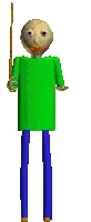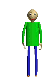 An animated sticker of Baldi from Baldi's Basics, with his head spinning rapidly in a pixelated, retro style.