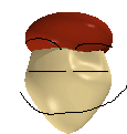 A pixelated 3D character face, identified as Baldi Mark Mc Marketing, wearing a red hat and a mustache.