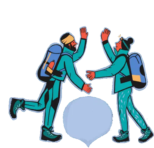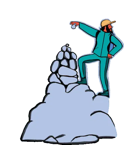 Animated sticker featuring a vibrant cartoon landscape with a green mountain, flat top, and a flowing blue river, inspired by Garner State Park.