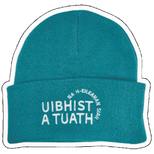 Purple beanie hat featuring 'North Uist' and 'The Western Isles' text, representing the Outer Hebrides.