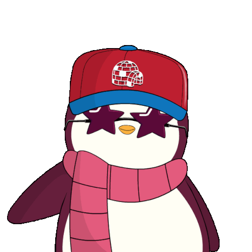 A cool cartoon penguin wearing a red baseball cap, star-shaped sunglasses, and a pink striped scarf, exuding a 'baller' attitude.