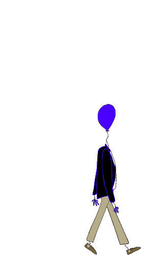 An animated sticker of a person walking with a blue balloon for a head, symbolizing being an airhead or having their head in the clouds.