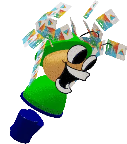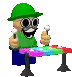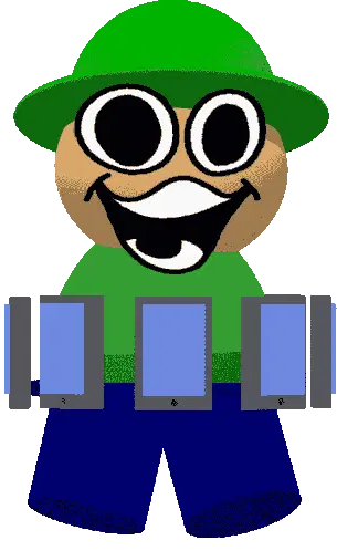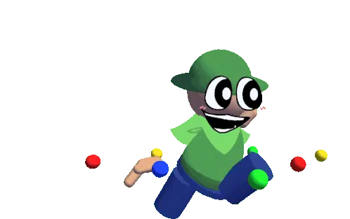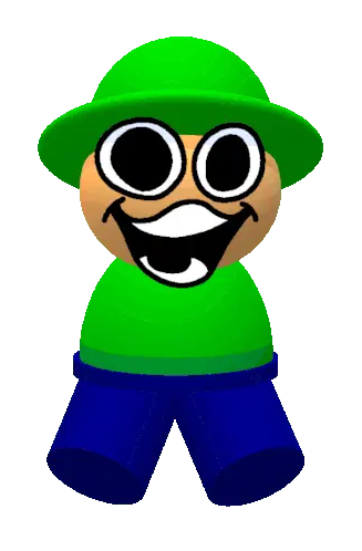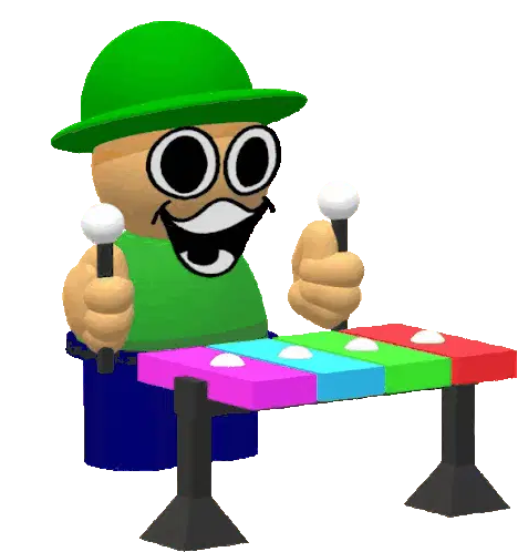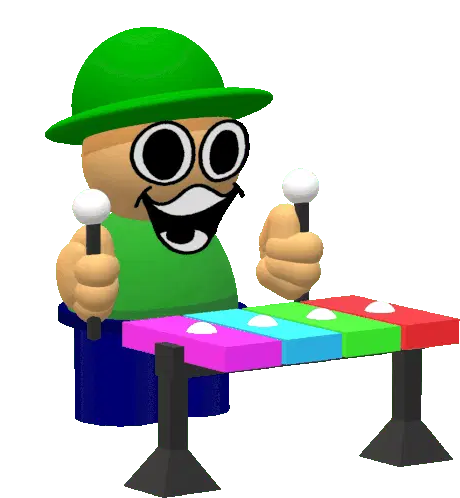 Bambi Fnf Bandu, the pixelated character, sits at a table, smiling and playing a colorful xylophone with mallets.