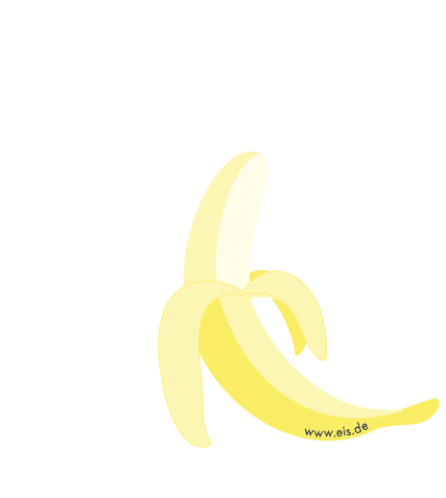 A wiggling peeled banana on a white background, featuring the 'eis.de' logo, implying a suggestive or 'dirty' theme.