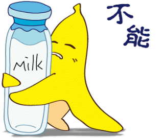 A cute cartoon banana hugs a milk bottle, expressing 'Can't be without you' in this sweet animated sticker.