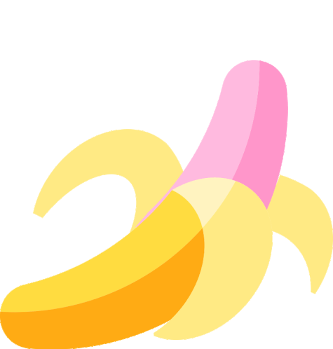 A vibrant illustration of a banana, partially peeled, revealing a bright pink fruit and yellow skin.