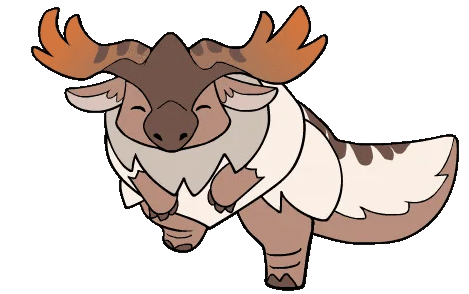 Banbaro, the adorable horned monster from Monster Hunter, happily walks with a gentle smile in this cute animated sticker.