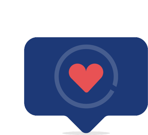 A dynamic sticker featuring a red heart within a blue speech bubble, surrounded by a white loading circle for Banca Mediolanum.