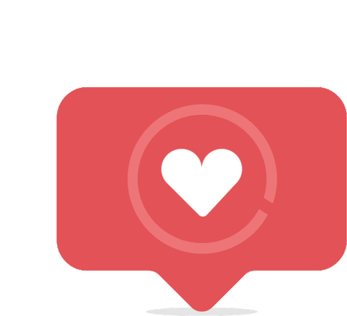 A red speech bubble with a white heart and a blue circular loading animation, representing love and progress for Banca Mediolanum.