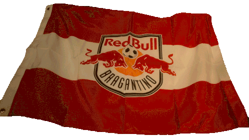 A vibrant animated sticker of the Red Bull Bragantino Futebol Clube flag, proudly displaying its iconic crest.