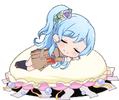 Chibi Matsubara Kanon from Bang Dream Bandori sleeping peacefully on a soft cushion.