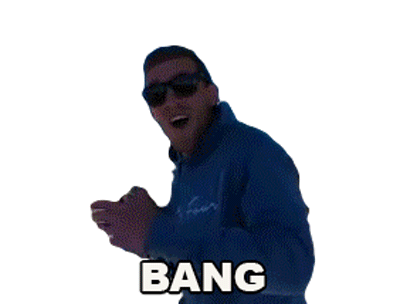 Scott Gauson enthusiastically makes a 'bang' hand gesture, exclaiming the word 'BANG' with a wide smile.