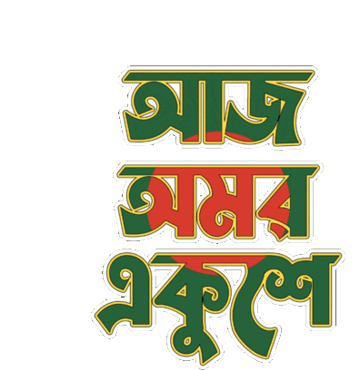Animated Bengali text 'আজ অমর একুশে' (Today is Immortal Ekushe), celebrating International Mother Language Day.