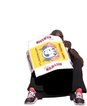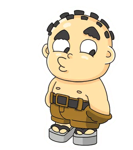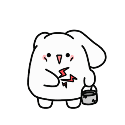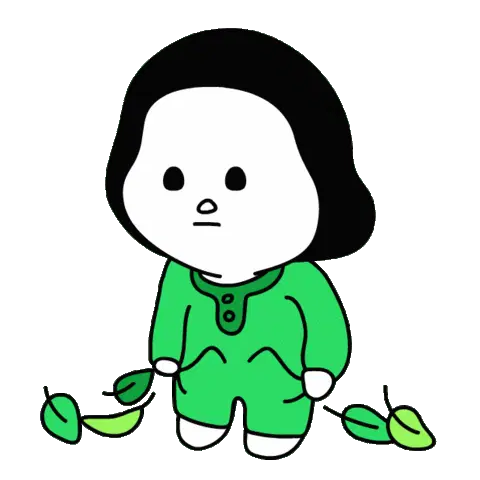A cute, sad white character with a bucket, symbolizing being bankrupt and out of money, with a falling leaf.
