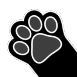 A cute black paw print with white details, perfect for expressing playful 'bap' or 'kitty' actions.