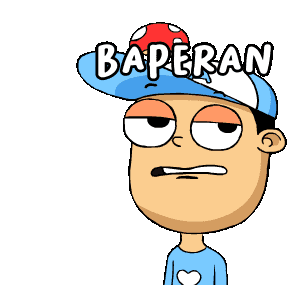 Animated sticker of the character Juki with the Indonesian word 'BAPERAN' (easily emotional) above his head.