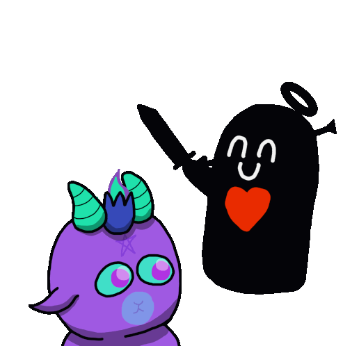 Animated sticker featuring Baphie Bonk and Franku, a purple monster and a black monster, with a heart.
