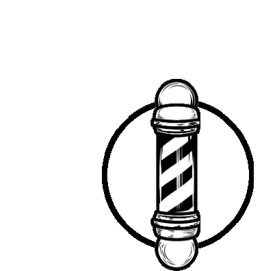 A classic black and white barbershop logo featuring a straight razor with a striped handle inside a circular frame.