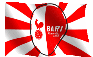 Animated sticker featuring the waving flag of Bari Football Club, with its distinctive red and white design and rooster logo. Ssc Bari.