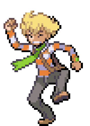 Man with arms crossed, then looks up and smiles. This sticker is identified as a Barry Pokemon Sticker.