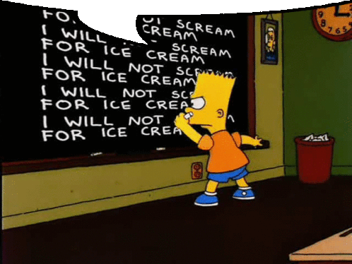 bart simpson stands in front of a blackboard that says i will not for ice cream