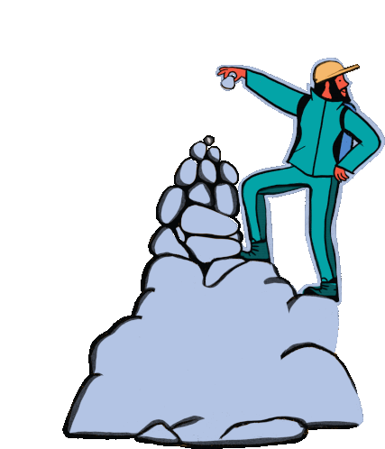 An animated sticker featuring a hiker on a mountain, adding a stone to a cairn, with the text 'Your place in the mountain'.