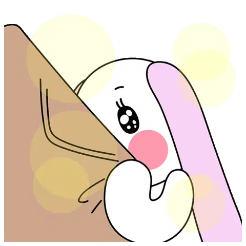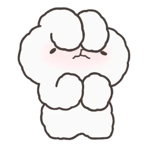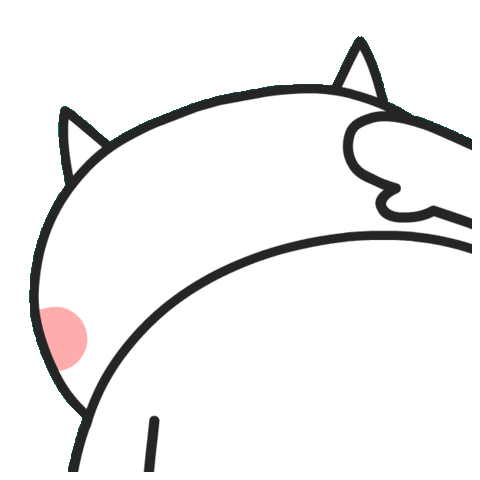 A cute, shy white cat-like character blushes with rosy cheeks, showing a modest smile, conveying bashfulness.