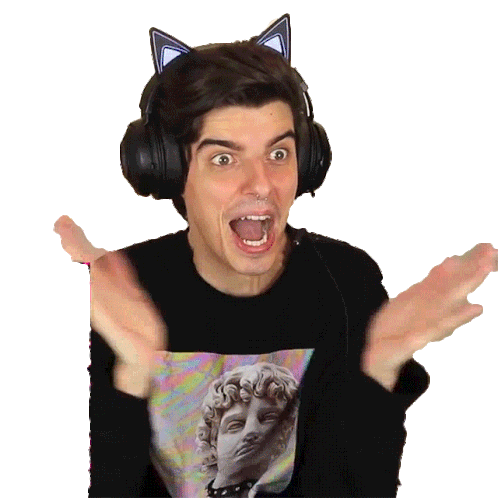 Jean Luca animated sticker, clapping hands excitedly with cat ear headphones and a surprised expression.