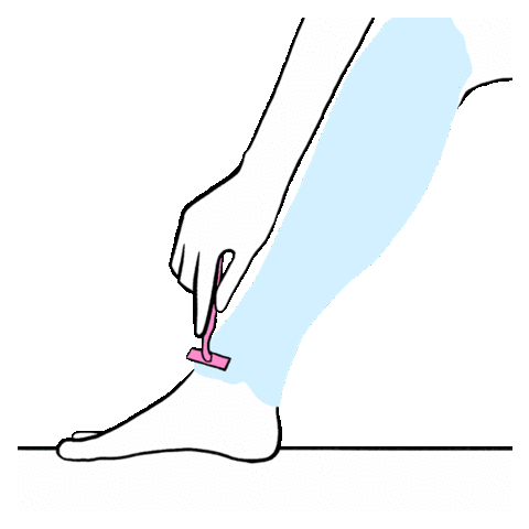 A person shaves their leg with a pink razor, applying foam to remove hair, symbolizing personal hygiene and getting clean.