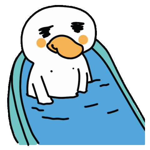 A tired, sad-looking cartoon duck character is shown taking a bath or wrapped in a blue blanket, appearing in an ablution state.