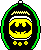 An animated pixel art sticker featuring a Batman-themed Tamagotchi virtual pet device with a glowing yellow bat symbol.