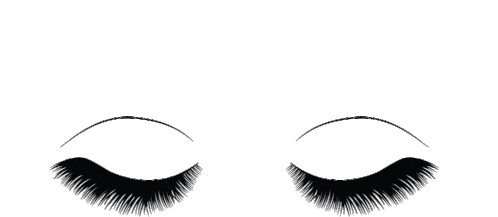 A pair of cartoon eyes with long eyelashes blink and flutter, surrounded by floating hearts and sparkles.