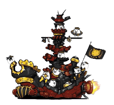a cartoon drawing of a tower with cats on it and a flag that says ' cats ' on it