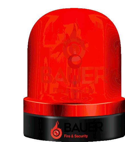 Animated sticker featuring a red flashing siren with the Bauer Fire & Security logo, symbolizing safety and protection.