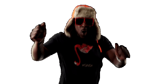 Bdh Collective member in a winter hat and sunglasses enthusiastically dancing at a Montreal ice party.