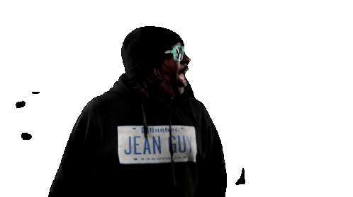An energetic man from Bdh Collective Montreal, wearing a 'Jean Guy' hoodie, shows enthusiastic reactions.