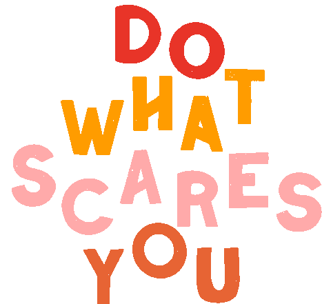 Animated sticker displaying the motivational phrase 'Do What Scares You' in vibrant, shifting colors.