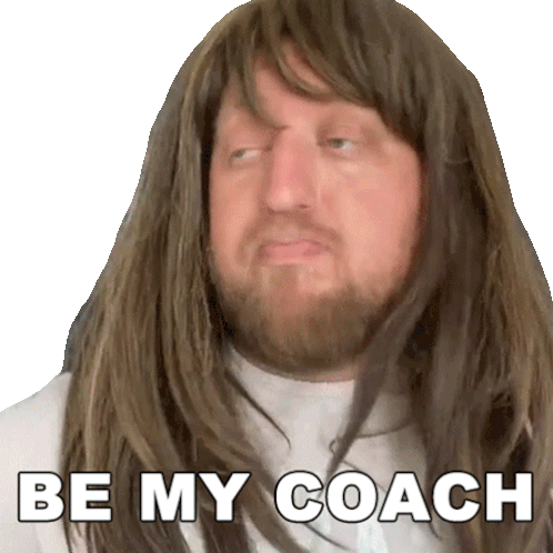 DJ Hunts, with long hair and a beard, enthusiastically asks "BE MY COACH" in this animated sticker.