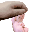 A hand gently squishes the adorable Bean Dwarf, a 'Heavens Gift' plush toy associated with Chris Barrie, a perfect baby gift.