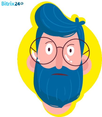 A cartoon Beardy Man with blue hair and beard raises his eyebrows in doubt, featuring the Bitrix24 logo.