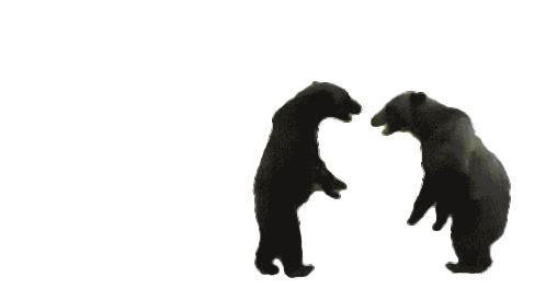 Two black bear silhouettes stand on their hind legs, engaging in a playful fight, wrestling and interacting.