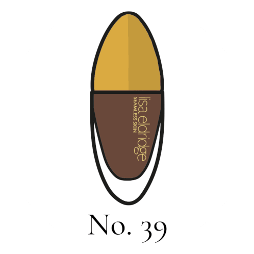 An animated sticker featuring Lisa Eldridge Seamless Skin Foundation, shade No. 39, in a sleek bottle design.
