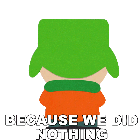 Kyle Broflovski from South Park expresses frustration and disappointment, stating "Because We Did Nothing."